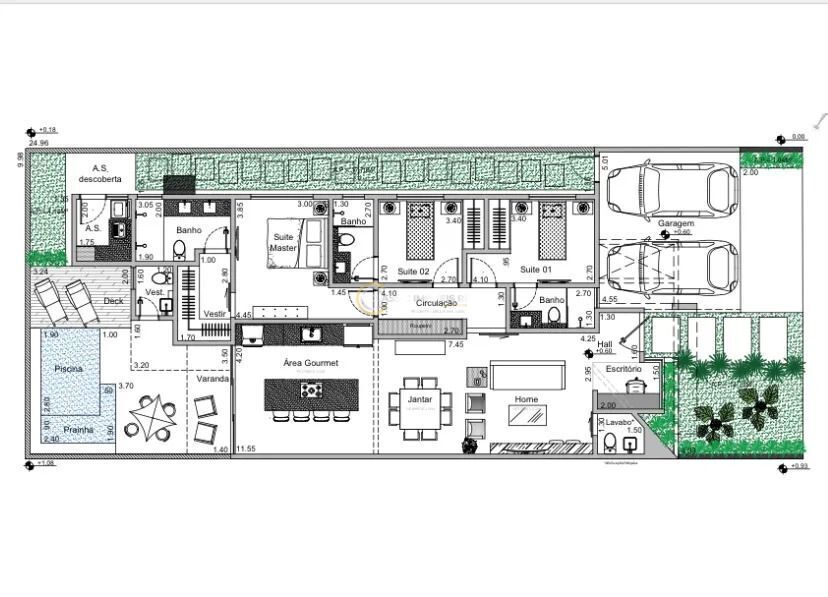 3 Dormitórios, sendo 3 SuítesGaragens