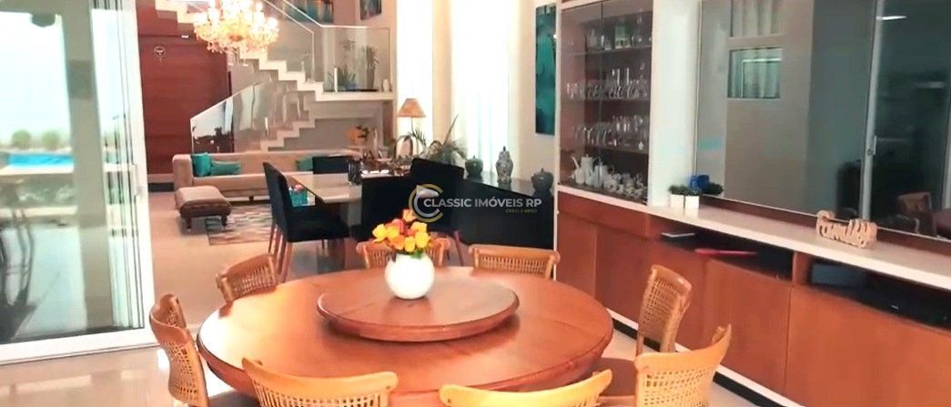 Sobrado no Condomínio Alphaville 2 na Cidade de Ribeirão Preto. Uma oportunidade para você!Excelente localização próximo a padaria.Principais informações do imóvel.Terreno 494 m² Área construída 414 m² 5 Suítes, com closets amplos, sendo a suíte master com pia dupla e hidromassagem dupla, ainda uma reversível (atualmente com armários/bancada/nichos planejados e quadro branco para brinquedoteca);Persianas elétricas blackout, ar condicionados e móveis planejados em todas as suítes;Cortinas em tecidos nobre em todas as janelas das suítes e na sala de estar;6 banheiros e 1 lavabo;1 Lavabo amplo decorado com pedra ônix iluminada;Home TV com armários planejados com iluminação, com tela embutida para projetor e estrutura para TV/Home Theater;Sala ampla (para 2 ambientes), com mezanino;Brinquedoteca climatizada (suíte reversível no piso inferior com armários/bancada/nichos planejados e quadro branco);Elevador Panorâmico; Área de serviço e dispensa ricas em armários planejados;Área Gourmet climatizada, com armário planejado e cristaleira iluminada, com churrasqueira completa com coifa, chopeira naja com sistema de anti-congelamento de serpentina, torre quente com micro-ondas e forno elétrico, ilha equipada com cooktop e coifa;Piscina com prainha tendo hidromassagem, iluminação em Led e aquecida;Projetor de mídia na área da piscina.Automação Google nas áreas Gourmet, Piscina e Home TV (Rede Wifi MESH e Rede Cabeada); Rede Cabeada e Rede Wifi MESH no piso superior e inferior, sendo 3 unidades de Access Point cobrindo toda área residencial, otimizando a conexão de internet;Copa de apoio no piso superior com armário planejado (pia, espaço para frigobar, gavetas, torneira e lixeira embutida na pia);4 Vagas de garagem, sendo 2 cobertas;O Condomínio, possui portaria 24 horas.Com um clube exclusivo para moradores, completo em lazer, com piscina, quadra de tênis, campo de futebol.Aproveite essa oportunidade! Agende sua visita!Atendemos aos sábados.